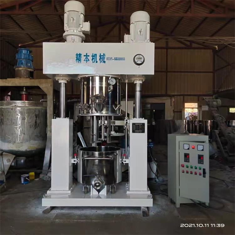 雙行星攪拌機(jī)根據(jù)行星運(yùn)動(dòng)軌跡設(shè)計(jì),攪拌結(jié)構(gòu)有低速攪拌器、高速攪拌器、以及相應(yīng)的刮板裝置組合而成。雙行星攪拌機(jī)的雙組低速攪拌器自轉(zhuǎn)的同時(shí)繞著軸心進(jìn)行公轉(zhuǎn),而且低速攪拌器的形式根據(jù)不同的物料粘度和生產(chǎn)工藝選擇不同的攪拌形式,常見(jiàn)的攪拌形式包括槳葉式、麻花式、爪式、框式等結(jié)構(gòu),具備良好的混合、反應(yīng)、捏合、溶解的作用;高速分散器由多層具備極高線速度的鋸齒狀分散盤(pán)組成,它同樣在高速自轉(zhuǎn)的同時(shí)繞著軸心進(jìn)行公轉(zhuǎn),能夠?qū)⒎哿希ㄖ鷦┛焖俚姆稚⒌綕{料里,具備很強(qiáng)的分散作用;刮板裝置根據(jù)客戶實(shí)際的生產(chǎn)工況選配。